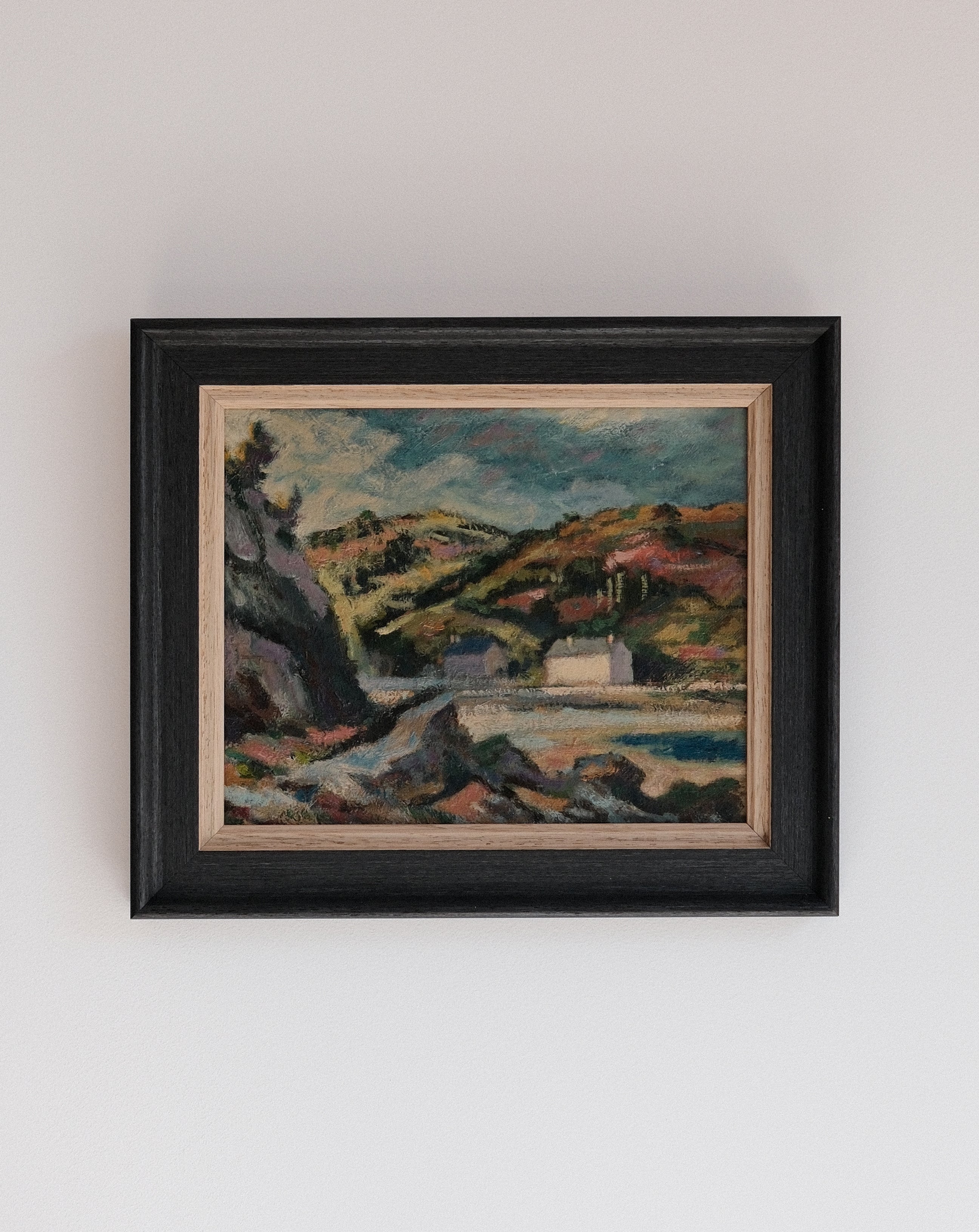 Painted by Robert Simon in the mid-1930s, this scene from northern France is reduced to rhythm and shadow — a pared-down memory of place, softened by time.