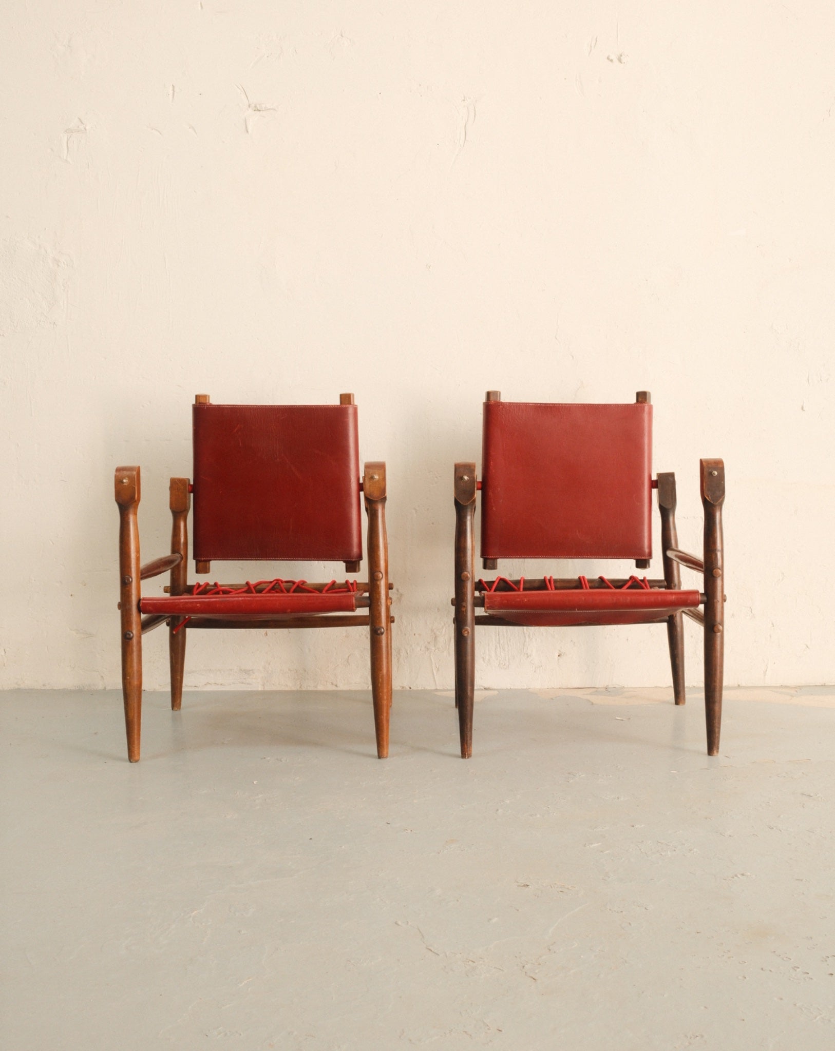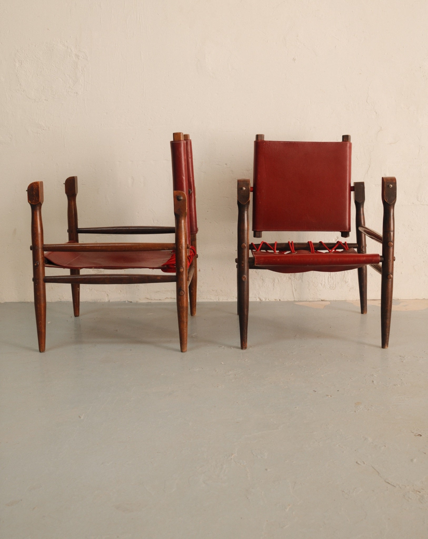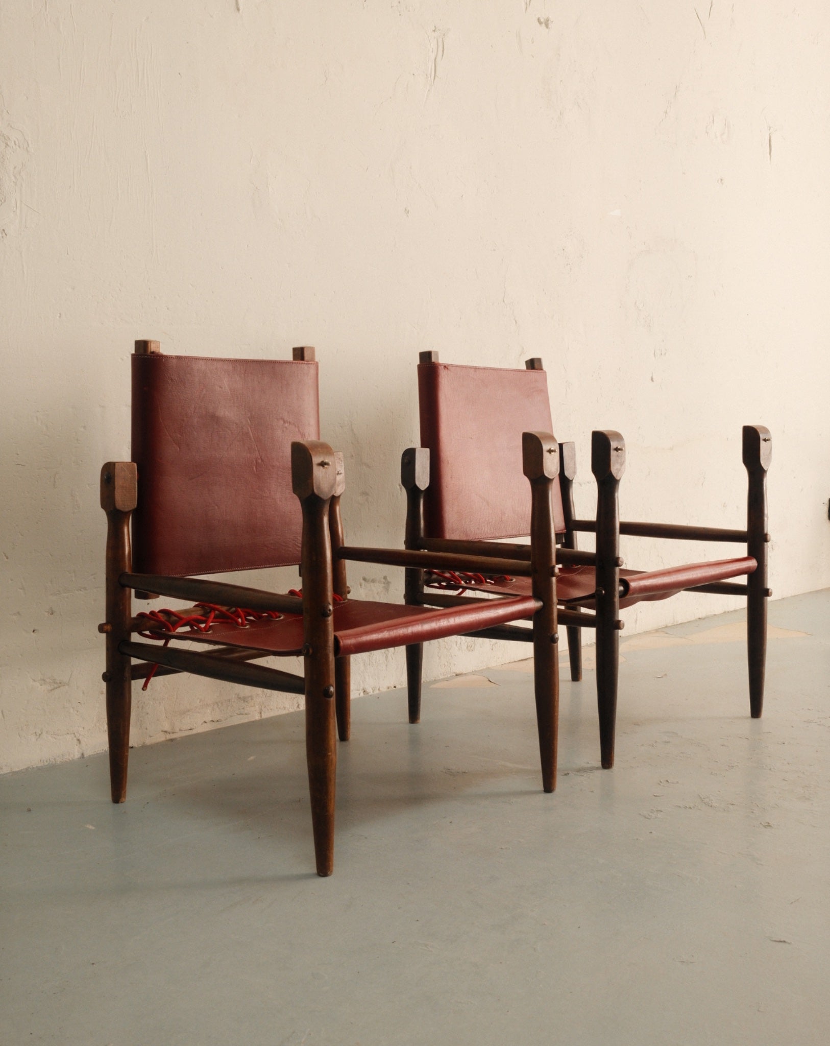An iconic expression of campaign furniture, the Roorkee safari chair by Hayat Brothers reflects a design rooted in mobility, craftsmanship, and enduring elegance. Produced in the 1960s, this model features a collapsible wooden frame paired with rich red leather, its warm patina enhancing the chair’s sculptural clarity. Originally conceived for portability without compromising comfort, the Roorkee chair remains a timeless staple — equally suited to refined interiors and collectible design contexts.