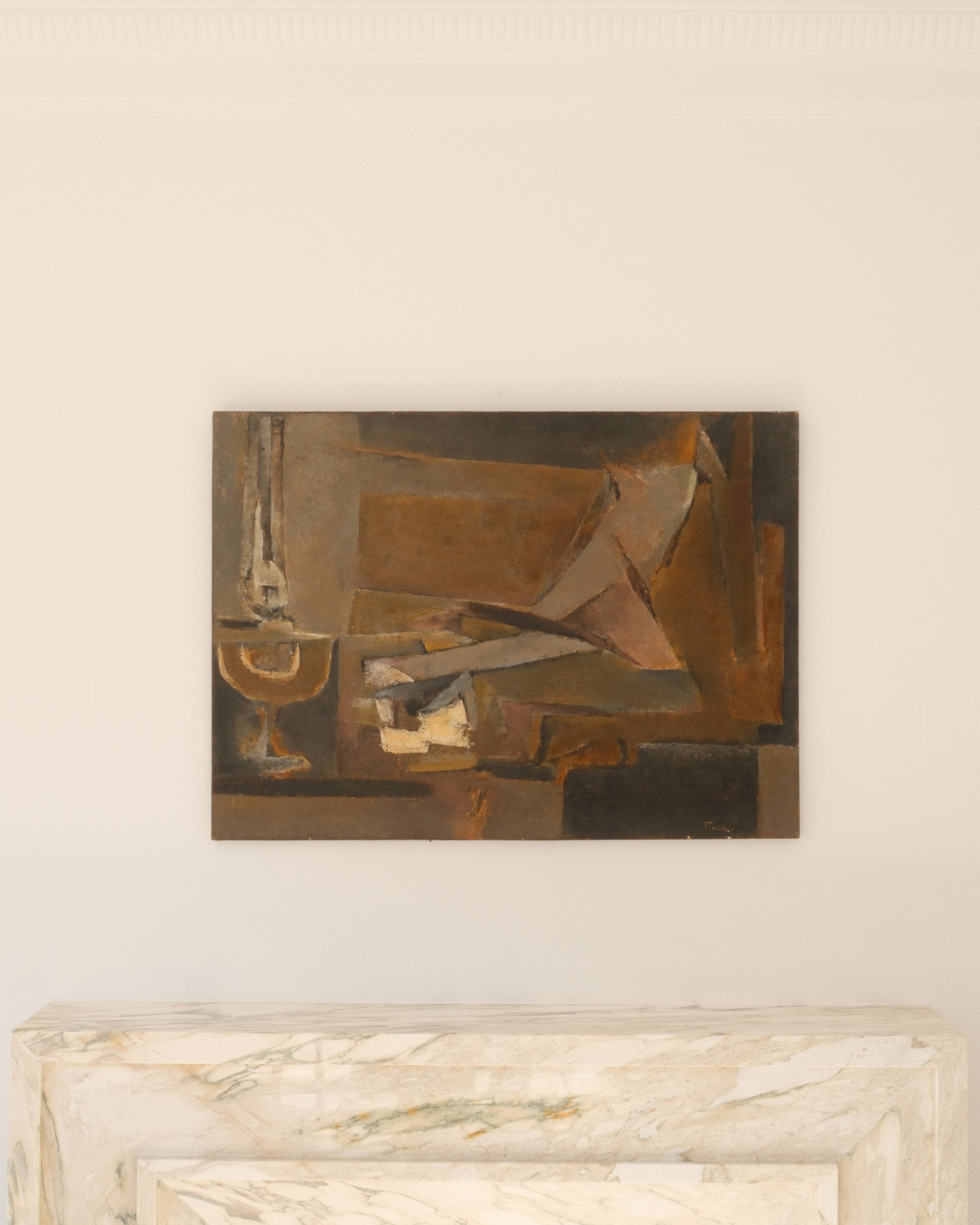 A refined still life by Marcel Fiorini, a French artist associated with the postwar School of Paris and widely recognized for his parallel career as an innovative printmaker. While Fiorini is celebrated for expanding the technical possibilities of engraving, his painting reveals a more intimate and contemplative dimension of his practice.