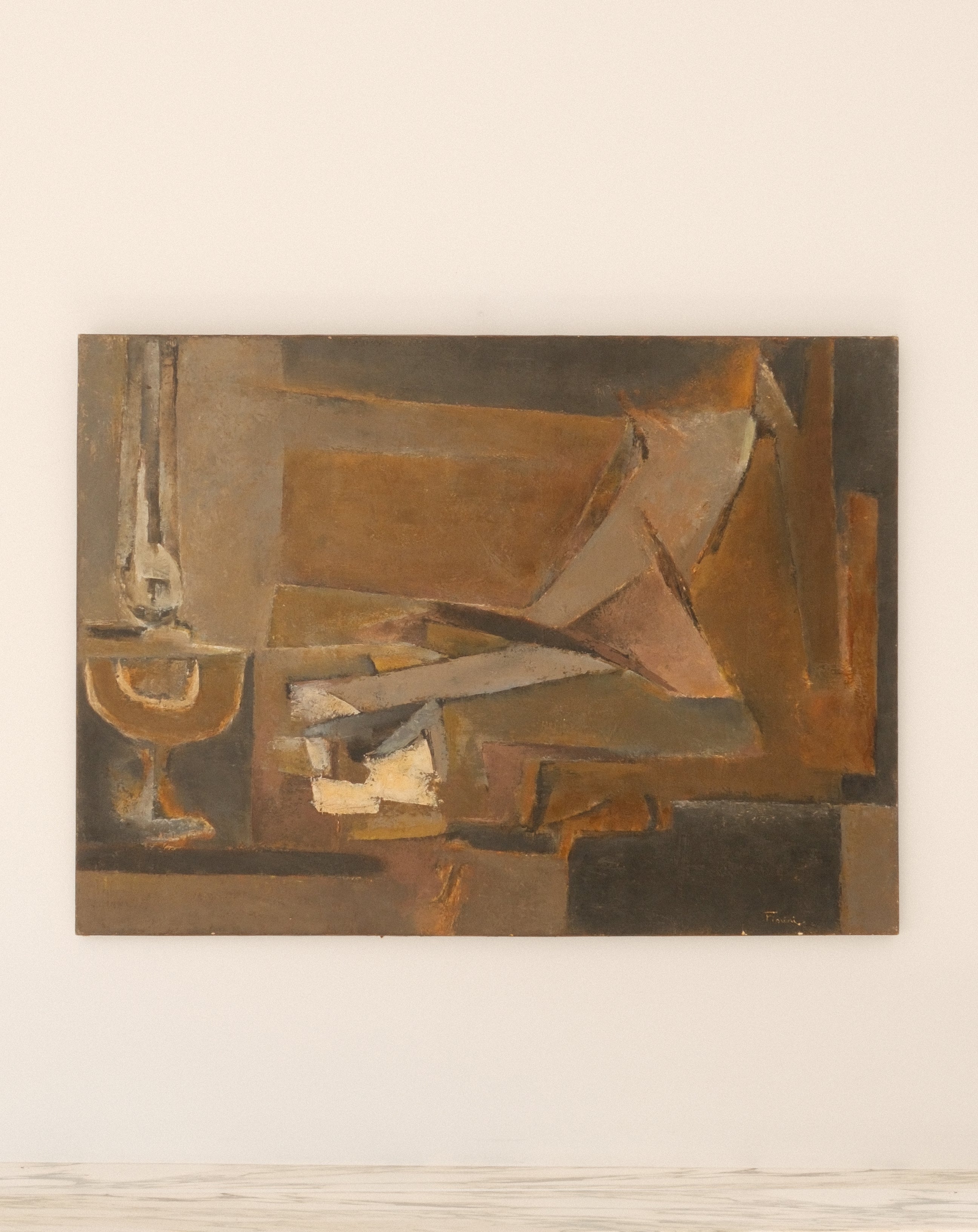 Signed lower right, the painting exemplifies Fiorini’s sensitivity to structure, light, and material — a poetic meditation on everyday objects elevated through painterly discipline.