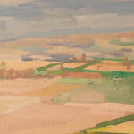 A serene landscape by René Guinand, Le Bernex au Jura (1955) reflects the artist’s sensitive approach to the natural world and his affinity for the quiet grandeur of mountain scenery. In this composition, Guinand captures the open horizon of the Jura with remarkable restraint, allowing light and atmosphere to unfold gradually across the canvas. Soft tonal transitions and measured brushwork evoke the stillness of the valley, where air, land, and sky seem to settle into a delicate equilibrium.