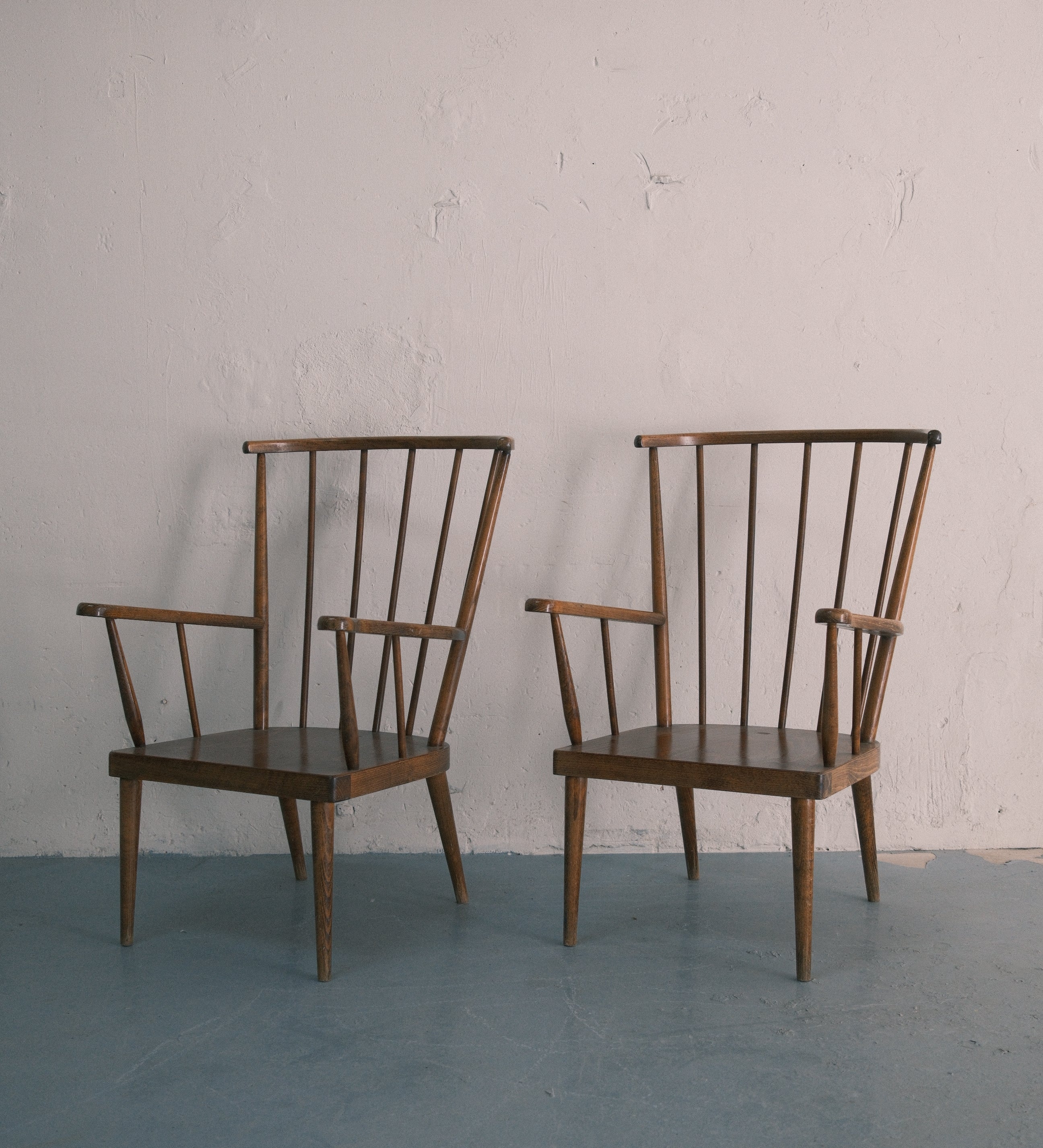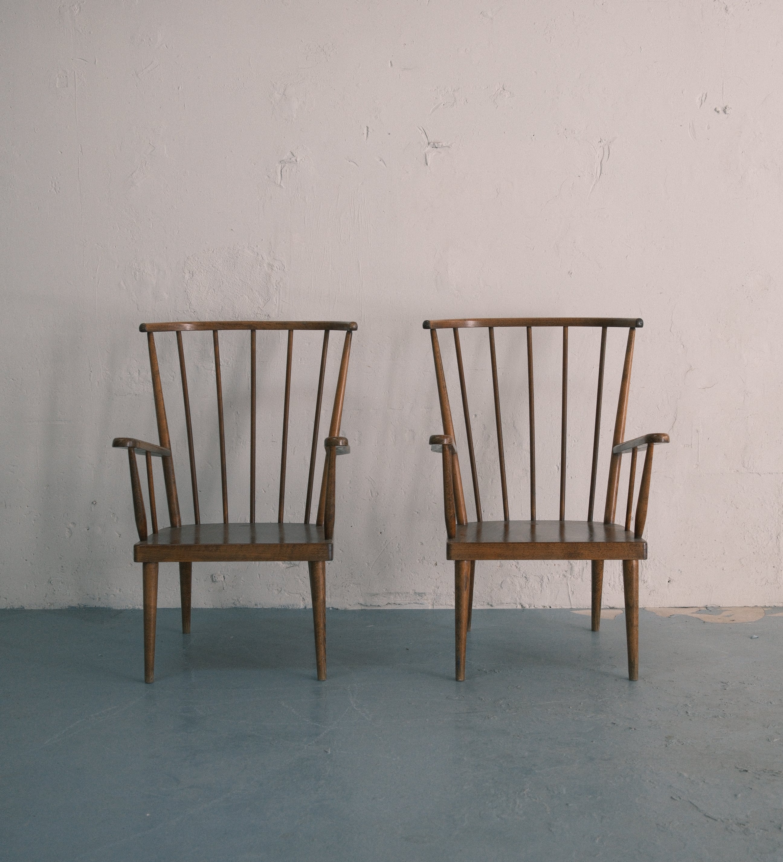 A Pair of Vintage Baumann Wooden Armchair, 1960s