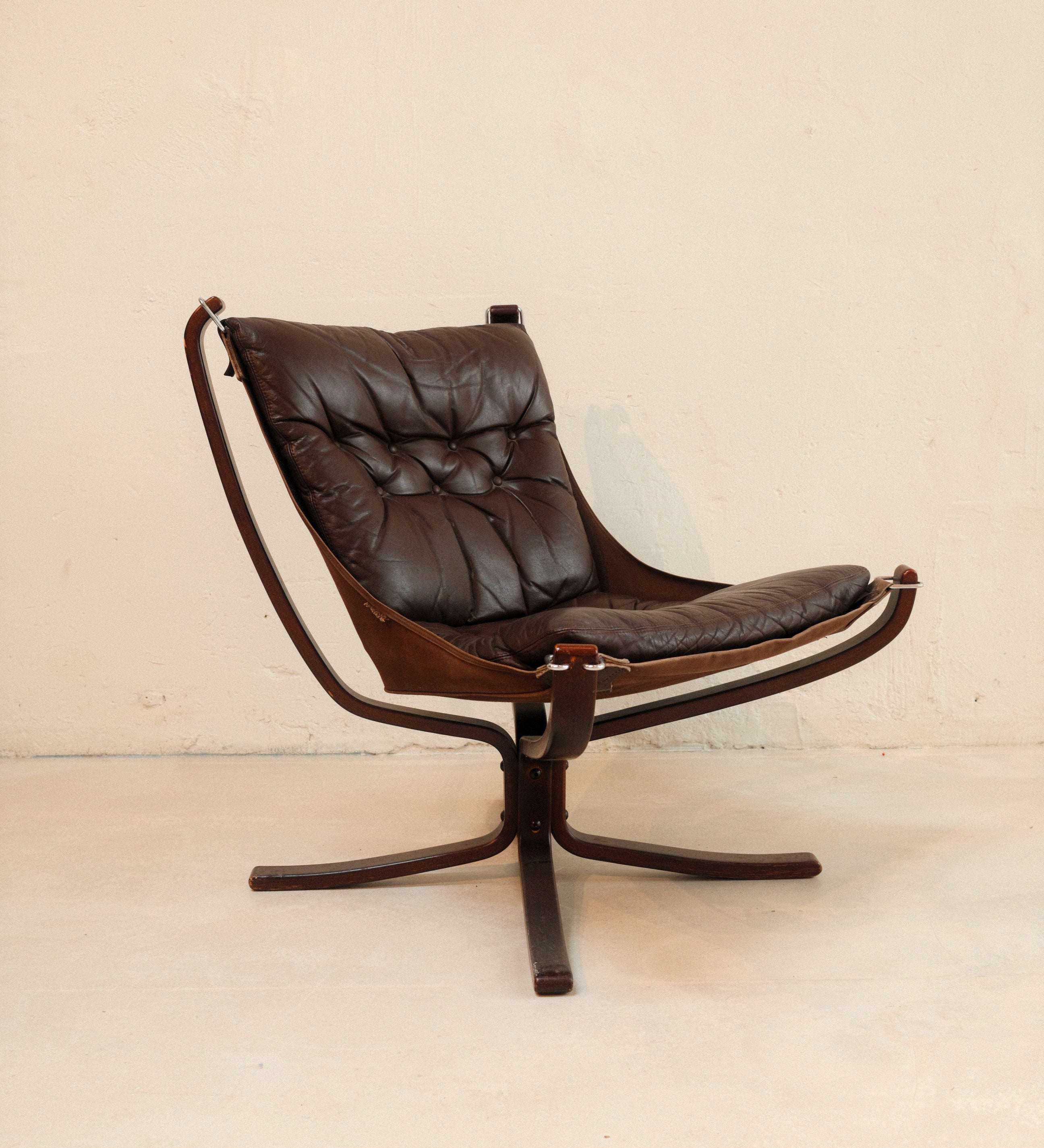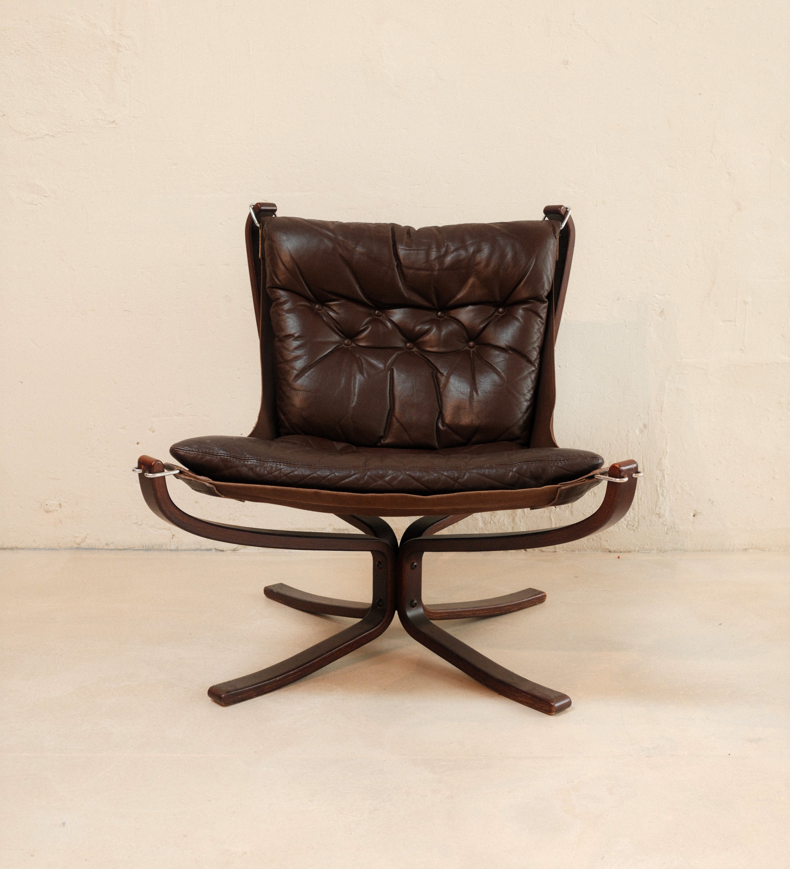 Vintage Falcon Chair in Dark Brown Leather and Plywood by Sigurd Ressell for Vatne Møbler, 1970s