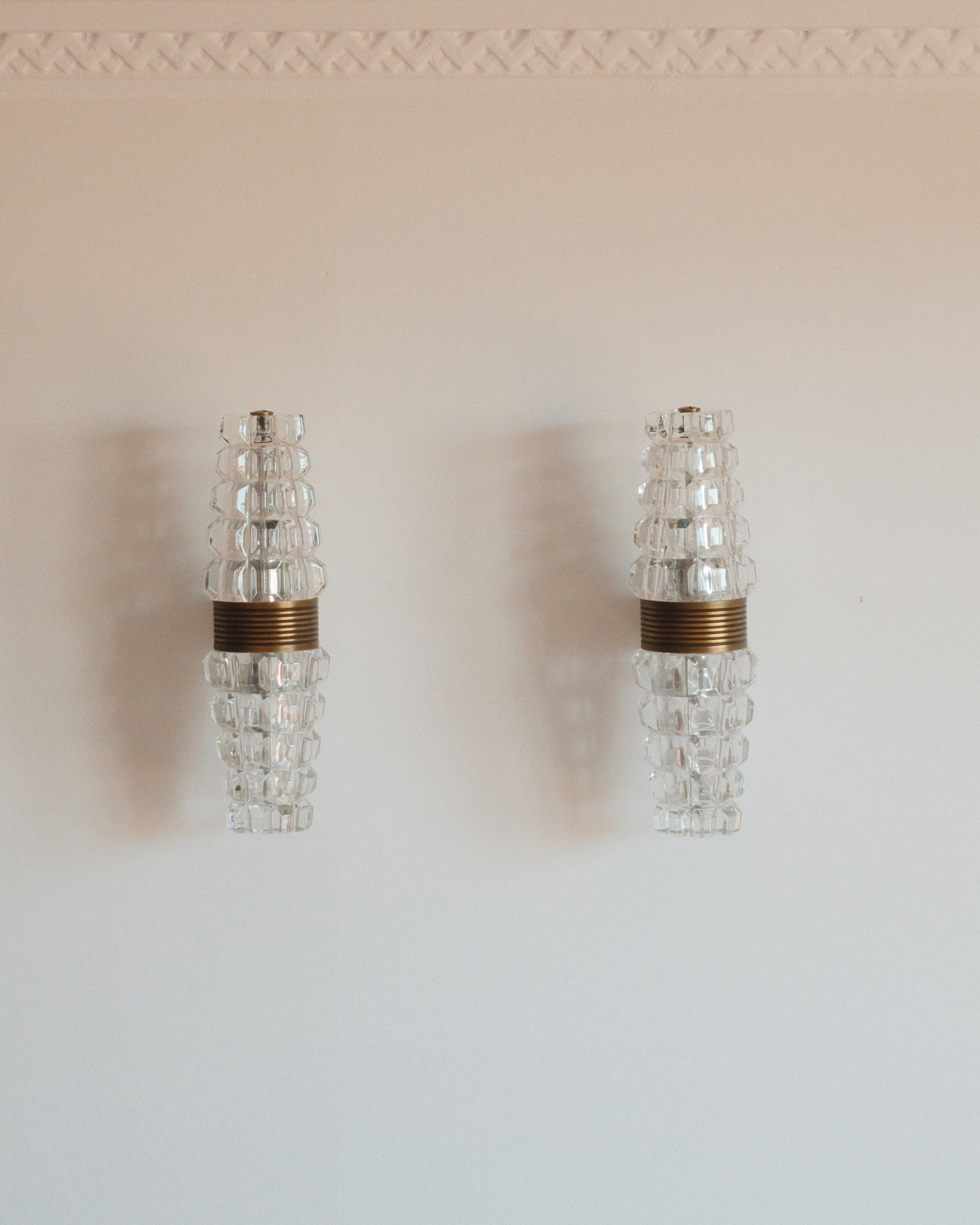 A luminous pair of wall sconces by Kolarz, renowned for its refined craftsmanship and elegant use of crystal and gilded metal. Combining decorative sophistication with timeless European design, these fixtures embody the brand’s signature balance of brilliance and structure.