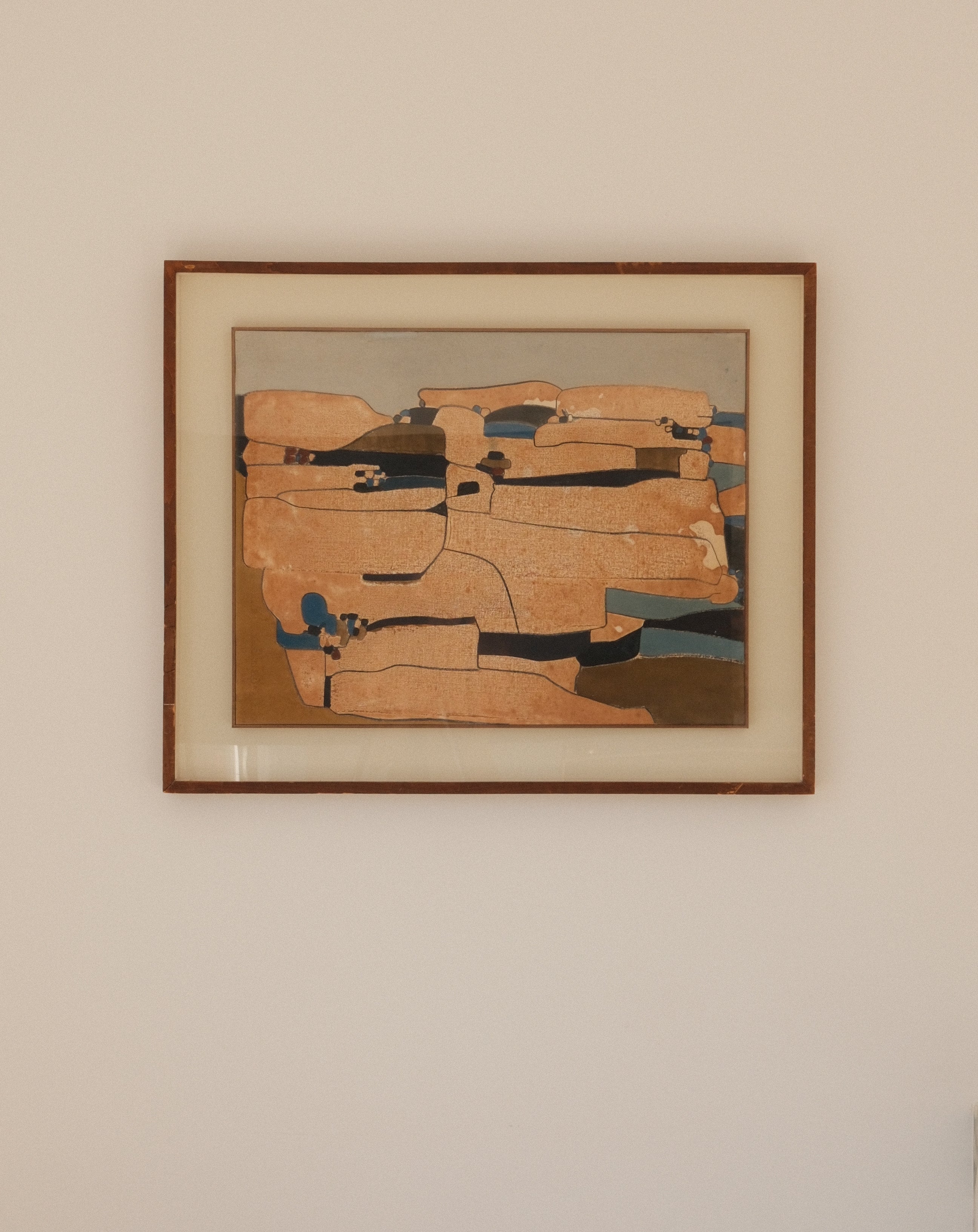 Materials and Techniques: Mixed media on paper mounted on isorel panel; signed and dated “1965” lower left